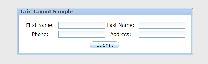 In this example, we created a simple register form using grid layout. Grid layout arranges components in cells using columns and rows.