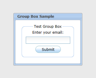 Group box object is based on Vertical Layout, so it lays objects vertically but with titled grouping border. The next example shows a group box with default parameters.