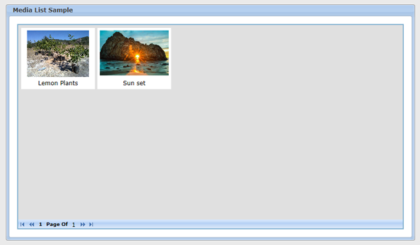 Media list is a data bound component used to view media files (images, audio, and video files). It takes XML data as an input.