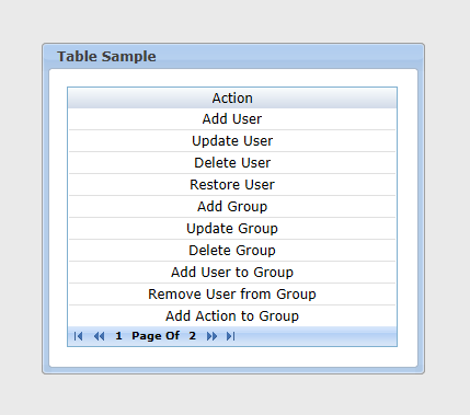 Table is a data bound component used to view data (like database table records). It takes XML data as an input. The next example shows a single column table: