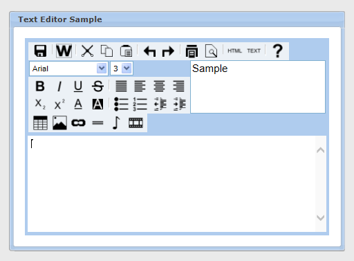 text editor object is a rich text to HTML editor that supports inserting media, tables, and links and styling text.